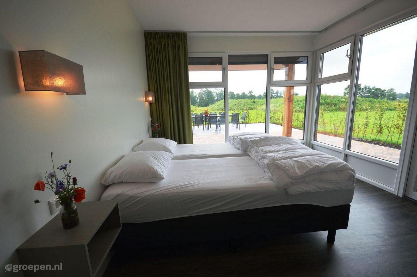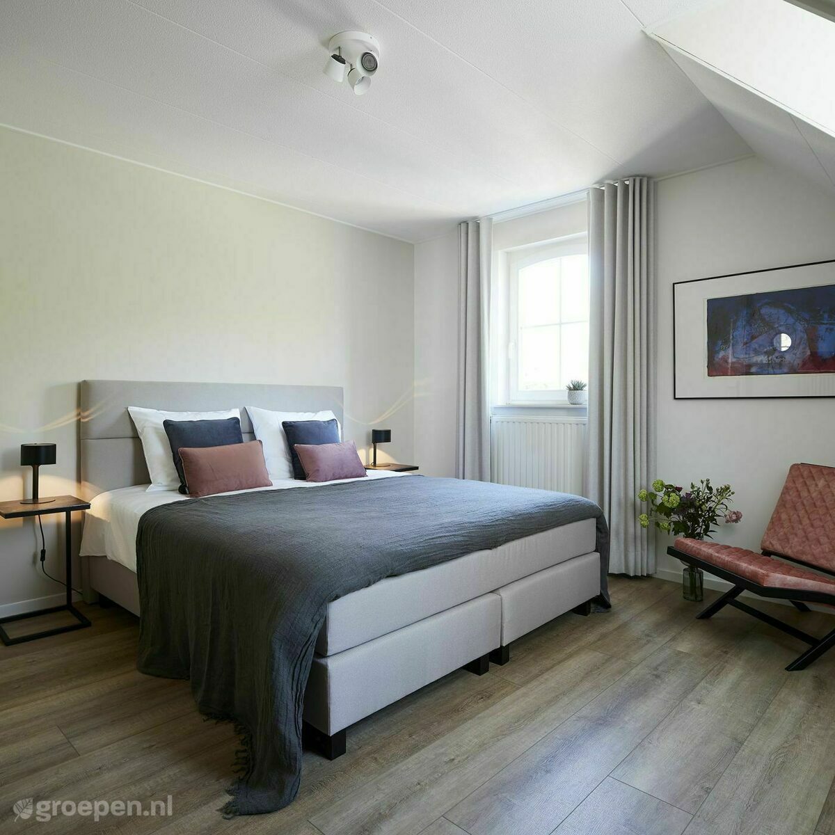 Mag luxe tijdens uw vakantie wel eens op de eerste plaats komen staan? Laat u dan, tussen de heuvels, overvallen door al het moois dat deze groepsaccommodatie in Gelderland te bieden heeft. Vanuit hier heeft u uitzicht op het noordelijke hellinggebied en de beroemde Zevenheuvelenweg. Uzelf liever even volledig terugtrekken? Het groepshuis beschikt over hoogstaande wellnessfaciliteiten. Kom heerlijk vertoeven in de relax ruimte, voorzien van sauna, bubbelbad, infrarood cabine en douchecabine. Gaat u liever voor dé ultieme filmbeleving? Dan voelt u zich in de aanwezige bioscoop, voorzien van echte bioscoopstoelen en uitstekende beelds- en geluidskwaliteit zonder twijfel de koning te rijk. Maak uw vakantie in de natuur compleet in deze luxe groepsaccommodatie met wellness.