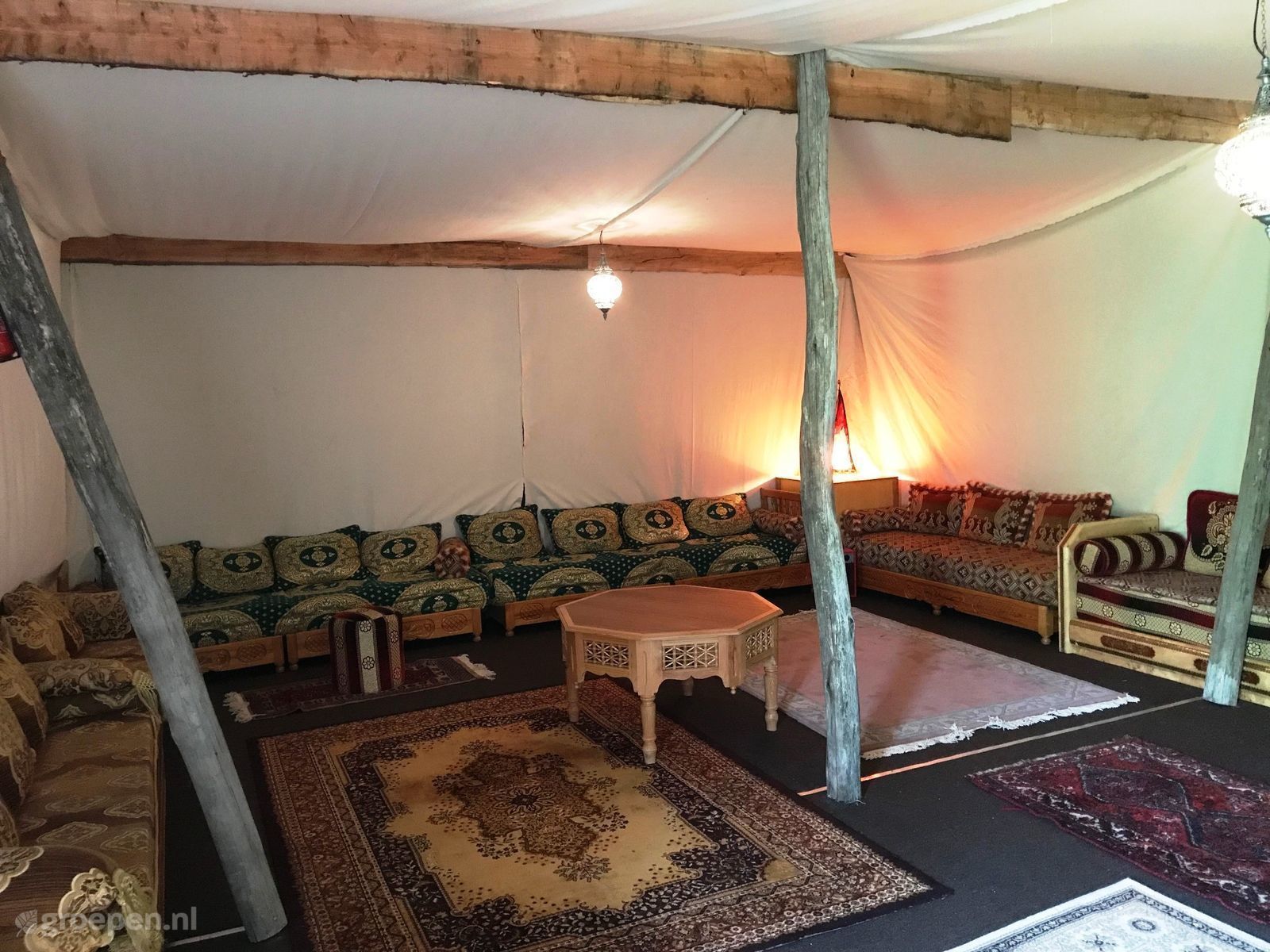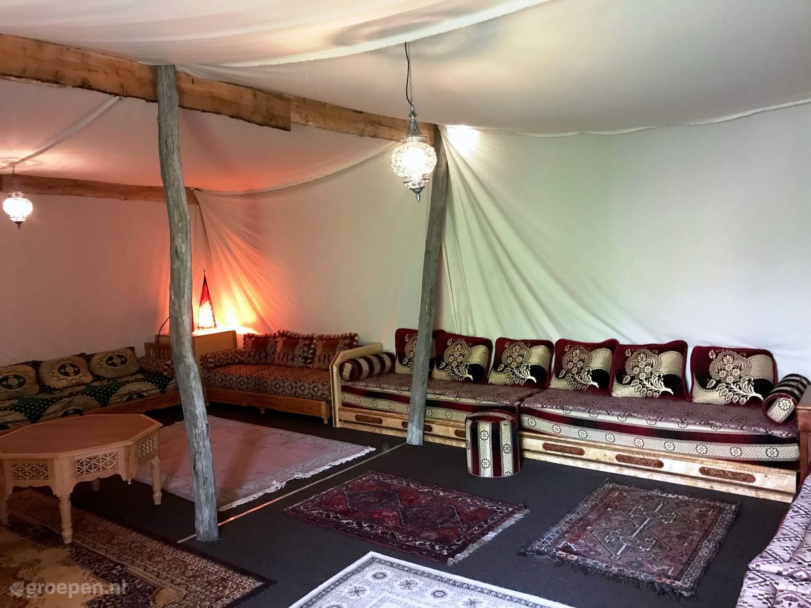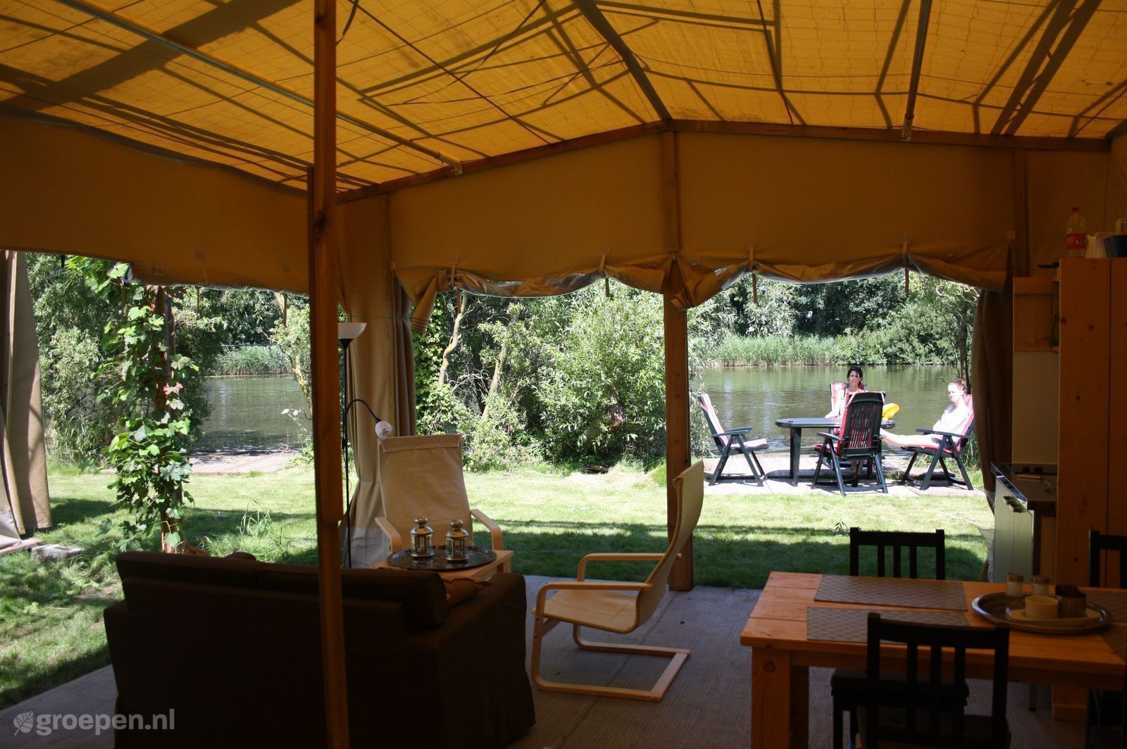 Voor wie vroeger al niets liever deed dan kamperen vormt de keuze voor glamping in een natuurhuisje een absolute aanrader! Deze groepsaccommodatie in Noord-Holland bestaat uit 5 grote 4-persoonssafaritenten. Deze beschikken over een eigen steiger/terras met uitgebreide tuinset aan het water. Beleef veel plezier in de grote sfeervolle oosterse tent, waar u eindeloos muziek kunt luisteren of tot diep in de nacht geniet van de rustieke omgeving en elkaar. Stap overdag gratis aan boord van een bootje, voorzien van koelbox. In de gemeenschappelijke ruimte zijn zelfs een pooltafel, tafeltennis, trampoline, springkussen en whirlpool aanwezig. Toe aan iets nieuws? Ontdek de wereld van glamping en dan rest ons niets dan u heel veel plezier te wensen in uw groepsaccommodatie middenin de natuur!
