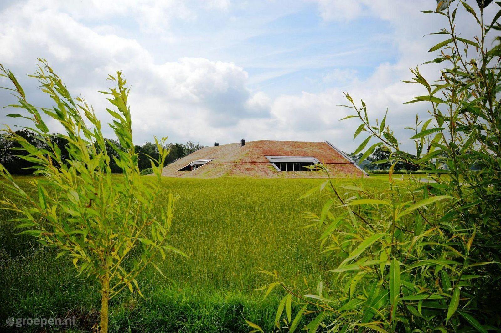 Groepsaccommodatie Rijssen Midden in de natuur ligt deze unieke groepsaccommodatie. Door het prachtige sedumdak gaat het gebouw volledig op in de omgeving.