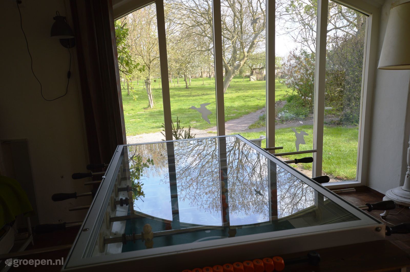Aan de rand van het natuurgebied de Poel vindt u groepshuis Nisse. Deze groepsaccommodatie in Zeeland biedt plaats aan 18 personen en beschikt over een grote woonkeuken. Kruip gezellig met z’n allen voor de openhaard in de woonkamer vanwaar u uitzicht hebt over de landelijk omgeving. Of geniet van de zon op 1 van de diverse terrassen gelegen rondom het huis. Het natuurhuis in Zeeland beschikt over een grote tuin met veel speelruimte en is dus ook geschikt voor kinderen. Zo zal het u aan niks ontbreken en bent u in staat optimaal te genieten tijdens uw vakantie in de natuur!